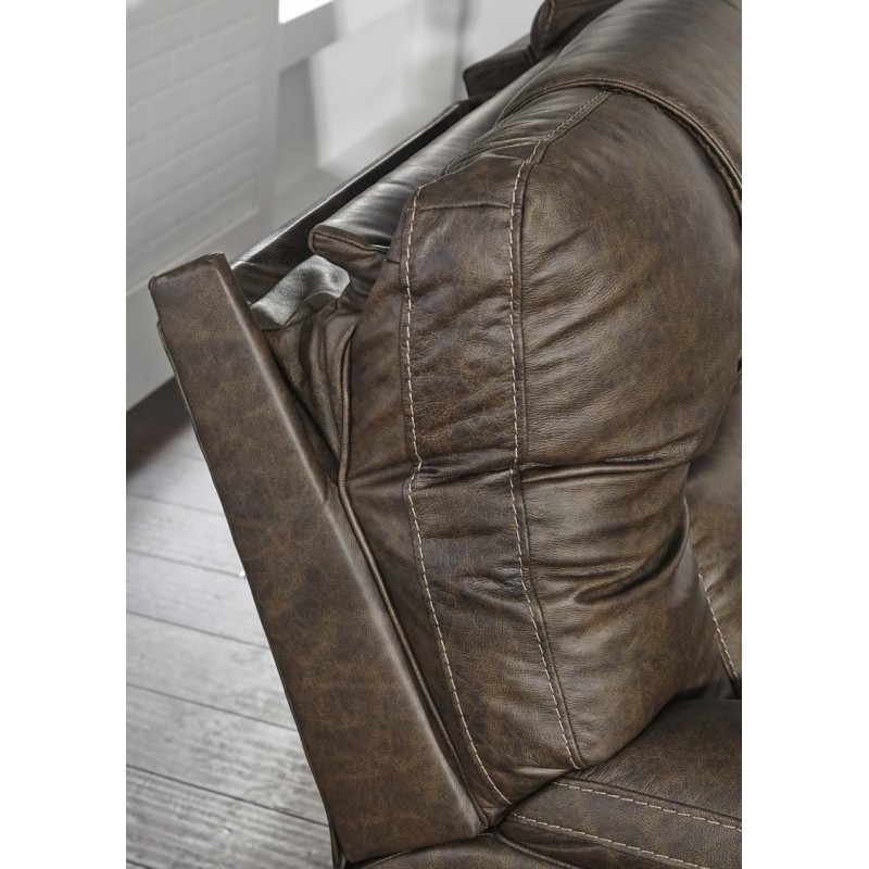 Big and bold, the Wurstrow power reclining sofa with Easy View™ power adjustable headrests delivers comfort at the touch of a button. Easily position the recliner, its headrest and the lumbar support to your liking for maximum comfort. Plus, with the convenient USB charging ports, cell phones or laptops can be charged without having to get up. Real leather is paired with expertly matched faux leather to level up the sofa's affordable luxury. And the umber-colored upholstery creates a rustic look that's perfect for your modern or casual setting.